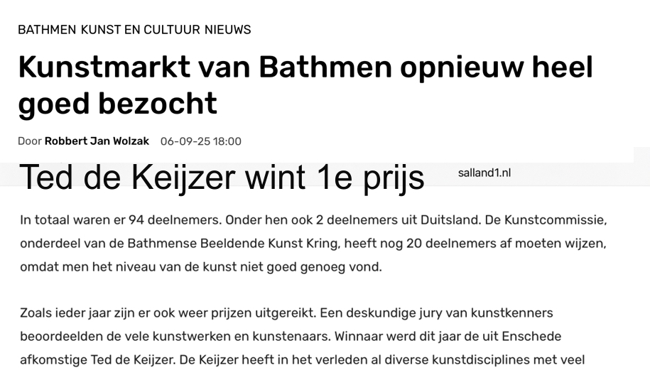 Ter gelegenheid van het 700 jarig bestaan van Enschede hebben 32 kunstenaars één werk ingeleverd voor de expositie bij Galerie DéDé in Enschede. Tijdens de opening op 22 november is bekendgemaakt dat het kunstwerk van Ted de Keijzer zal worden aangekocht voor de gemeente Enschede.