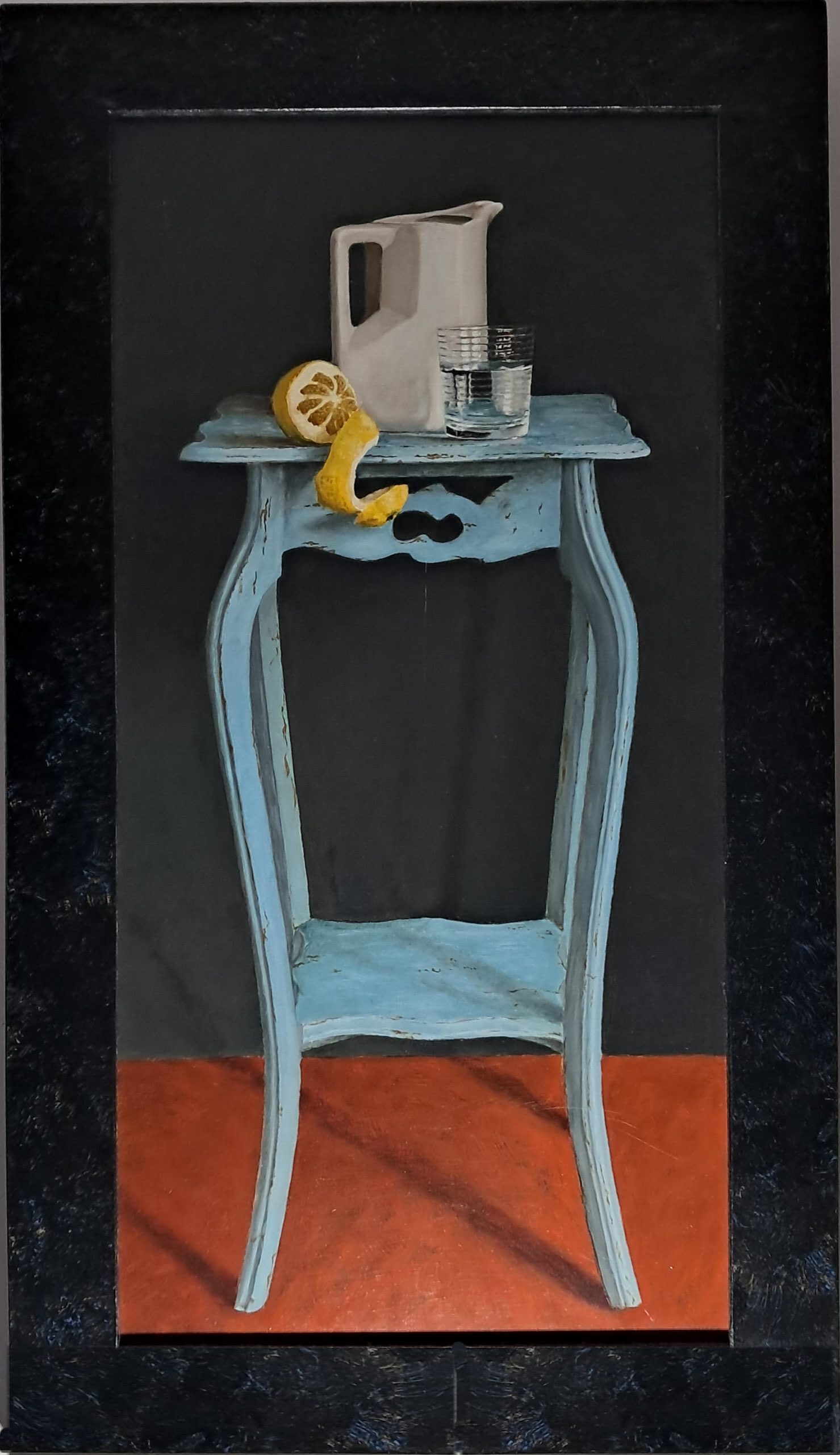 Schilderijen Een selectie van de schilderijen die te koop zijn. Aubergines en Koffiepot 70 x 60 cm 41 x 46 cm 45 x 55 cm Tafeltje, citroen, glas 40 x 80 cm Pruimen op rode Chinese schaal – 90×100 cm Drie flessen – Acryl/Olieverf op doek 80x50cm Drie Copier glazen / 60×90 cm Spaanse kan met druiventros 90 x 100 cm Grappafles en pompoen 60 x 65 cm Malusappeltjes in Chinese vaas – Acryl/Olieverf op doek 120x75cm Buick special 1951 – 70×80 Kannen, puddingvorm en pruimen 55 x 85 cm 70 x 40 cm